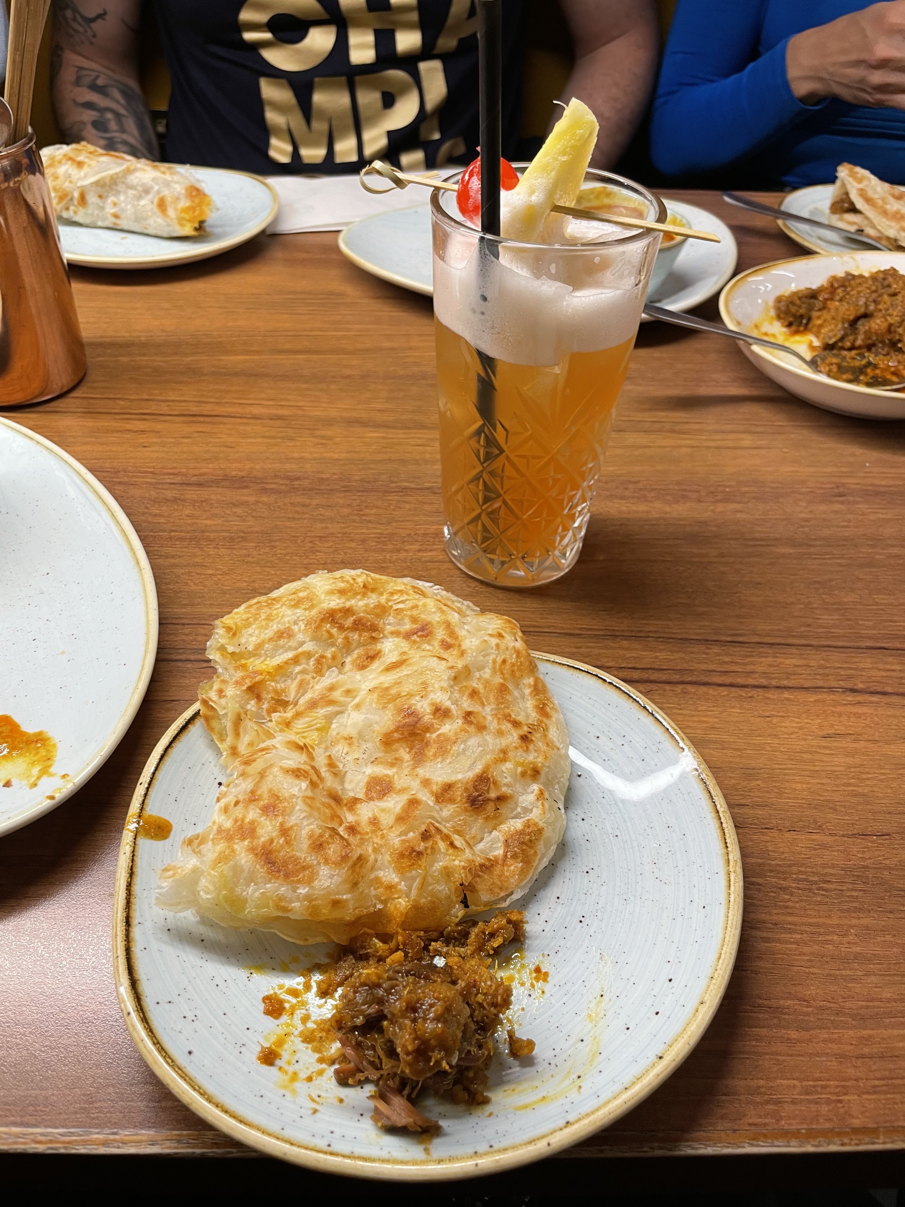 Our first food stop served us croquettes with vermouth. While eating, we noticed a large, energetic, and buzzing group of people moving down the alley next to the restaurant. It was a very famous F-1 driver, his entourage, and a ton of fans trying to get selfies. Our second stop was a restaurant in an old brothel and strip club. We tried pig cheek on toast with red peppers and red wine. This particular restaurant is known for allowing its animals to die naturally before butchering. As an in-between, we stopped by a liquor seller to try Genever, Old Tom gin, and London dry gin. We made our way to Chinatown and were served Indonesian Beef Rendang and roti with a Singapore sling. Continuing in Chinatown we tried beef bao buns followed by Chinese French toast. All of these stops had long lines and we were able to get right in as a group. I am sure those waiting in the queue were not happy. We finished the night with a beer at a pub with a couple from our food tour. Turns out they are co-owners of Wooden Robot and Elsewhere, a popular brewery and bar in Charlotte. It is a crazy small world.