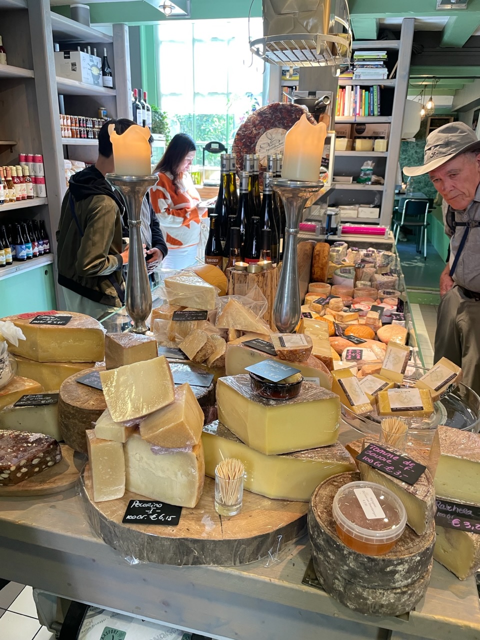 For lunch, we booked an Amsterdam Food tour. It was a 4-hour tour where we tried most of the notable or popular dishes and drinks in Amsterdam. Our first stop was at an old cafe that is one of the oldest cafes in Amsterdam. We tried traditional Dutch apple pie and coffee. At our next stop, we tried an Indonesian-style beef sandwich and beer. From there, we went to a dessert shop to try syrup waffles, chocolate truffles, and hot chocolate. To keep things interesting, they took us next to a butcher to try traditional Dutch sausages and meats. After the butcher, we made our way to a cheese shop where they age their own cheeses. We were served three different styles and ages of cheese with white wine. Our final stop was for herring, eel, and Bitterballen (a Dutchmeat-based snack, made by making a very thick stew thickened with roux and beef stock and generously loaded with meat) with beer.