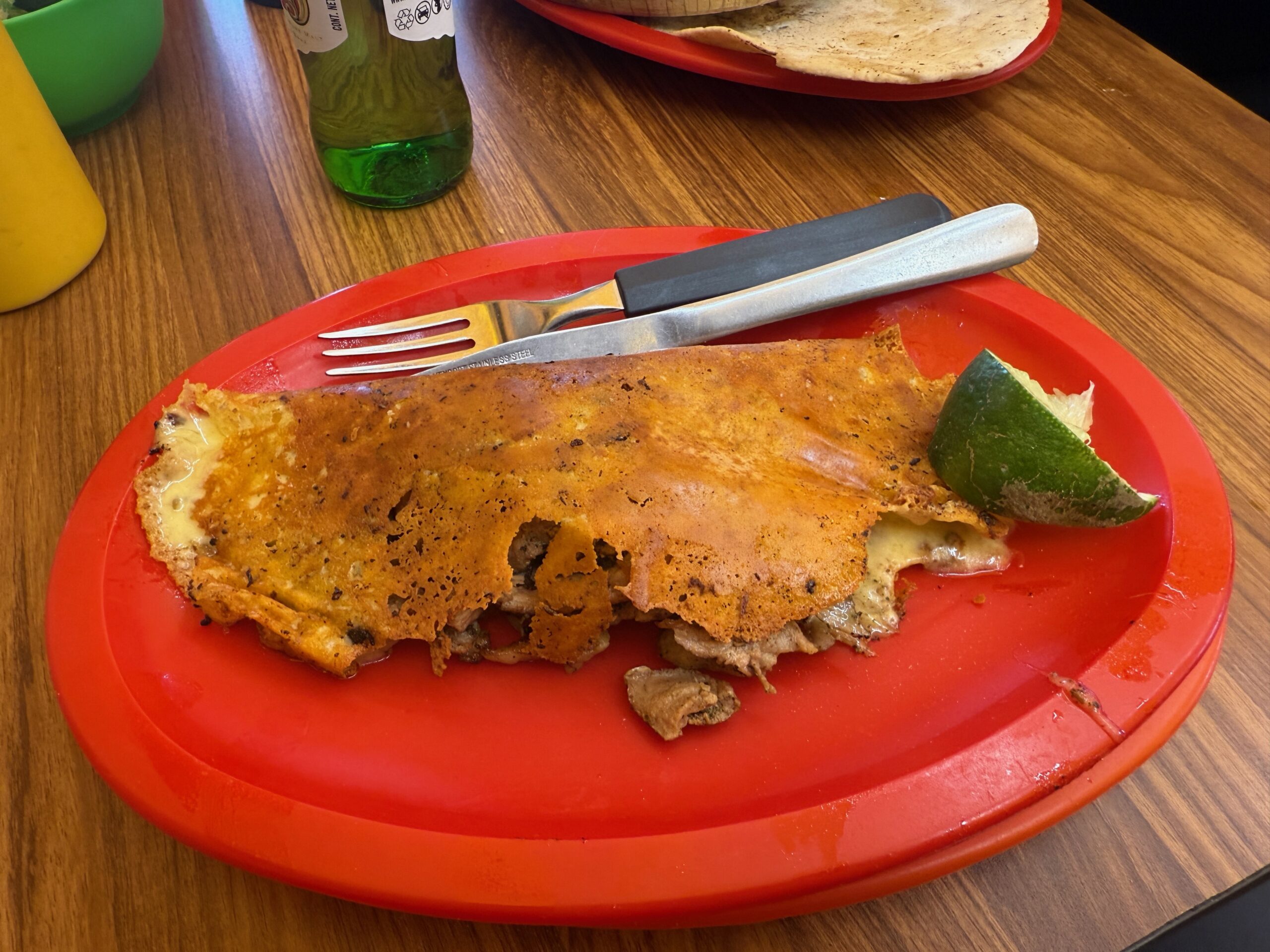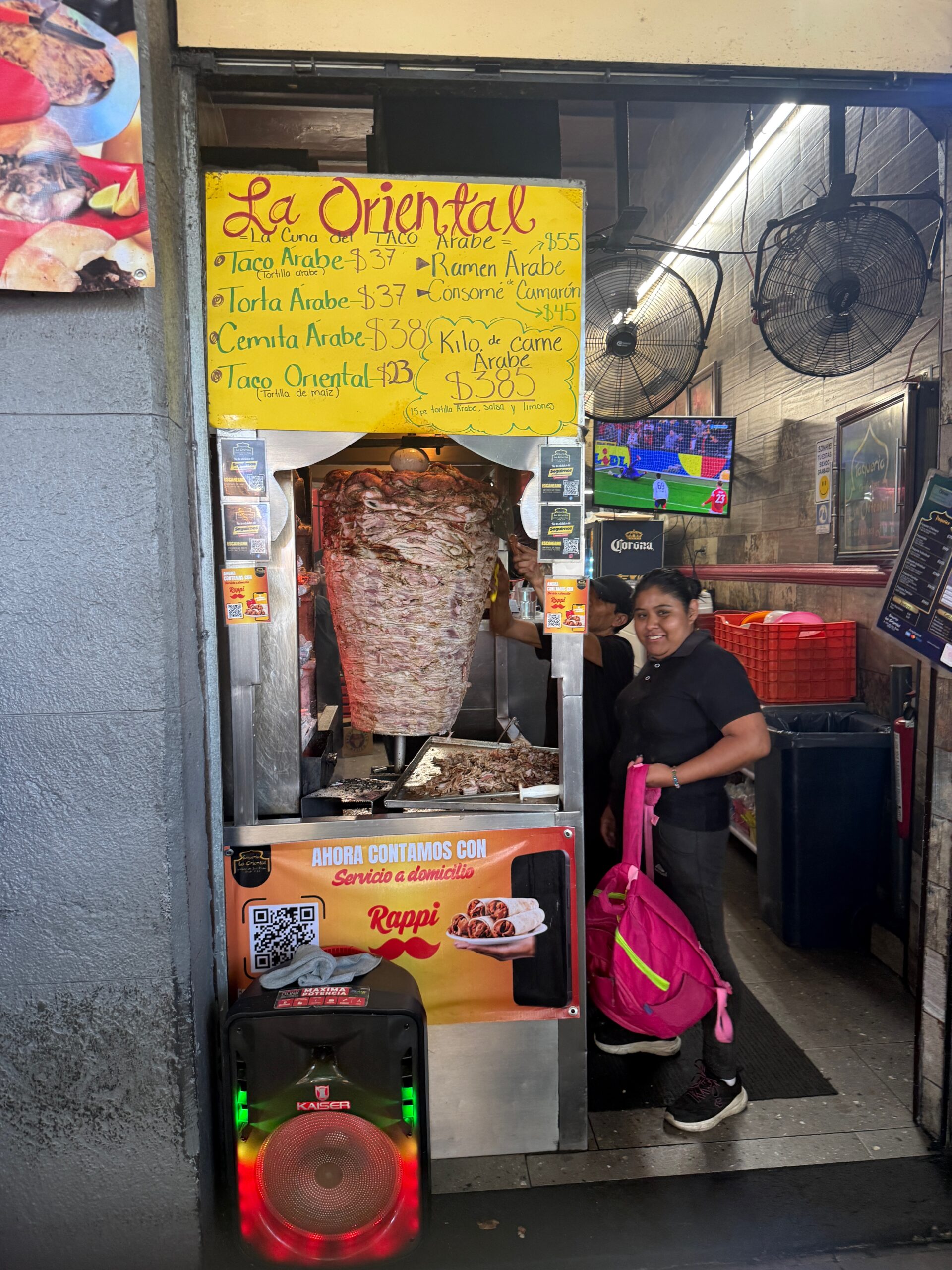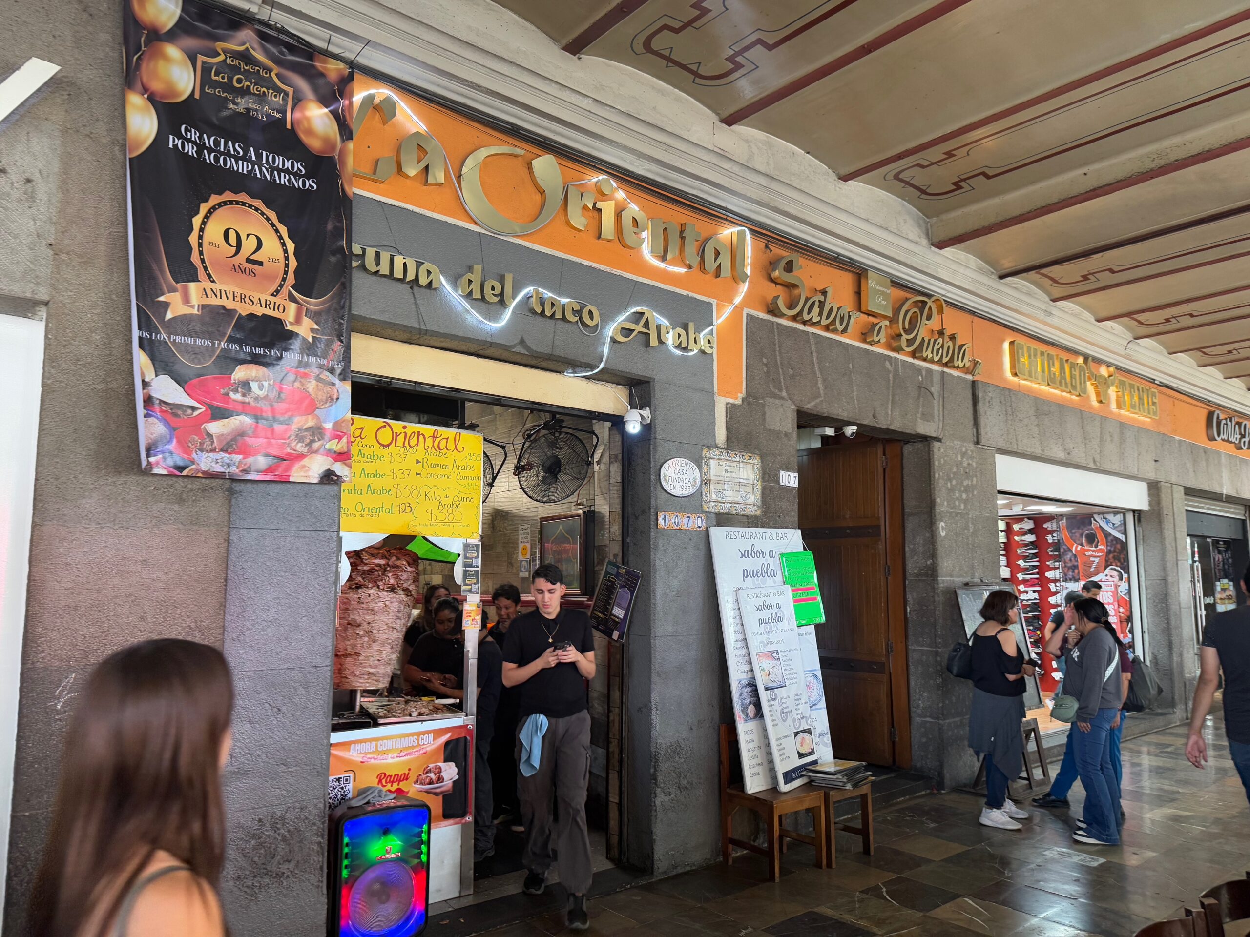 After a few hours visit at the museum we headed to the one taco place our guide said we must visit before leaving town. It is a small shop know for its "Arab" or "Oriental (in Spanish)" tacos. It offers tacos with shawarma meat served in a pita instead of a tortilla. It has been in Puebla since 1933 and is considered to be the place that brought this style of tacos to Mexico from Lebanon. They modified the original recipe from lamb to pork since lamb was hard to come by.