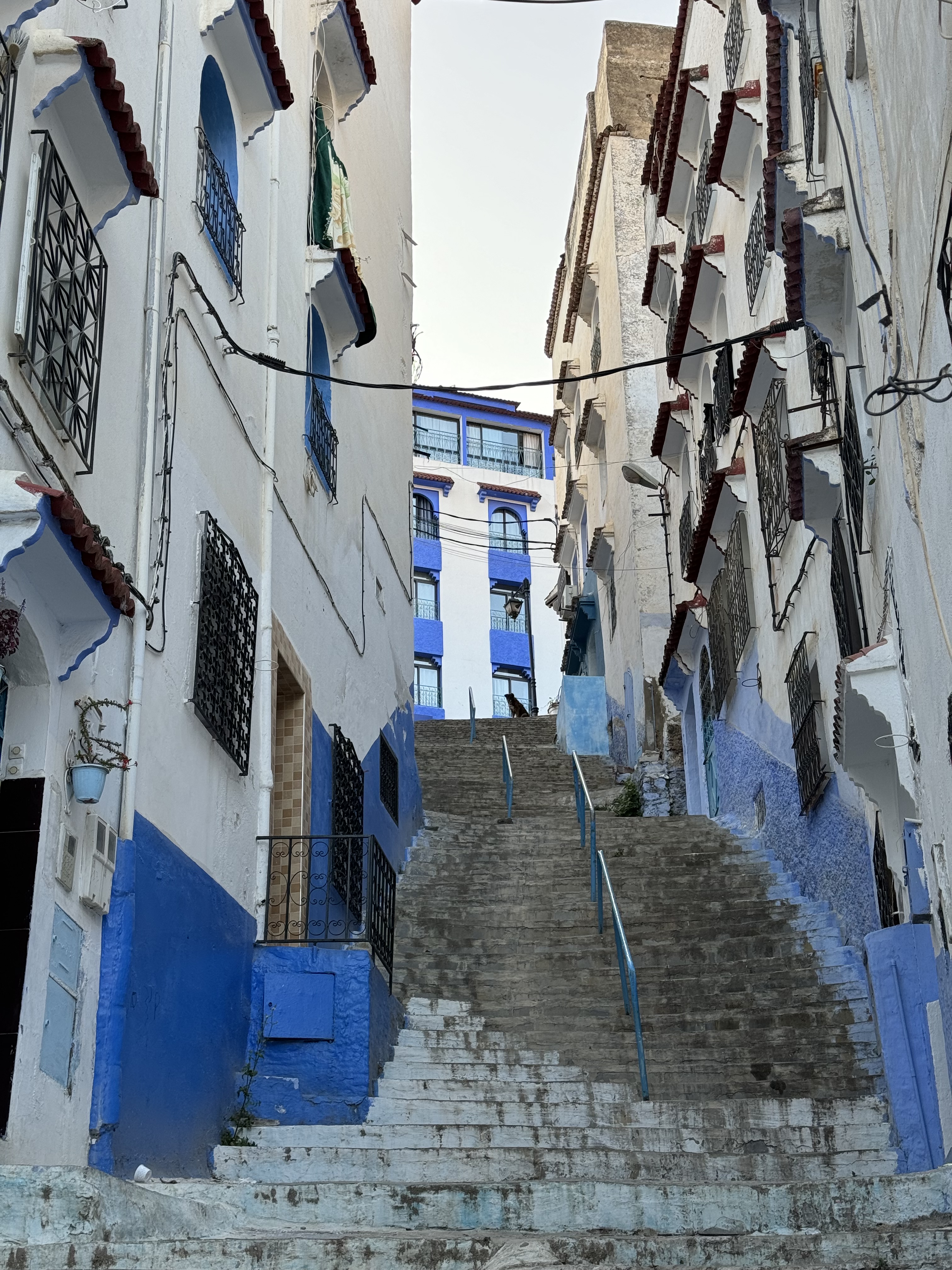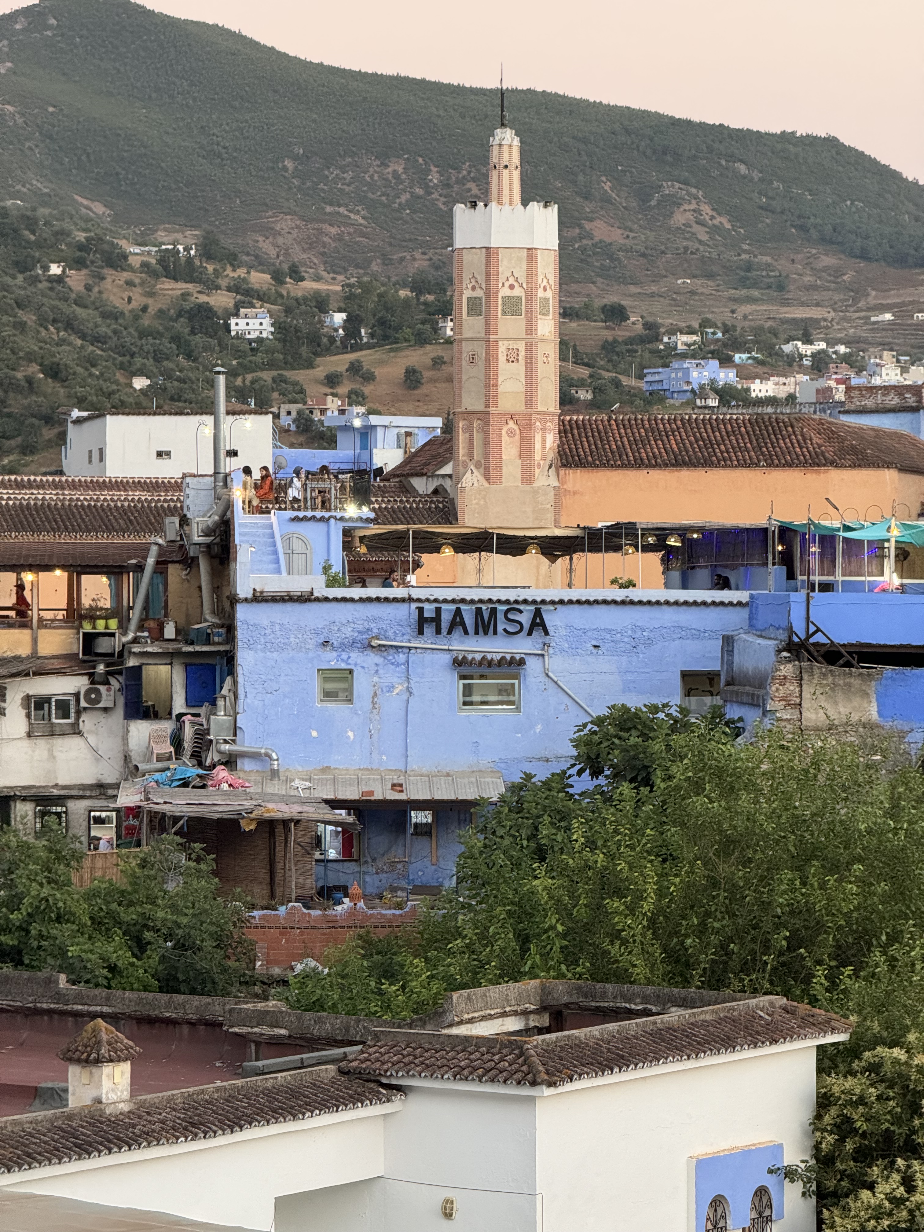 After leaving Tangier, we had another 2 hours before we arrived in Chefchaouen. Good for you if you can pronounce that name. Our hotel was nice, quirky, and is located just outside of the center of the Medina. After dropping our bags in our room and taking a few minutes to rest, we headed out for an orientational walk with our guide and then dinner with the group.