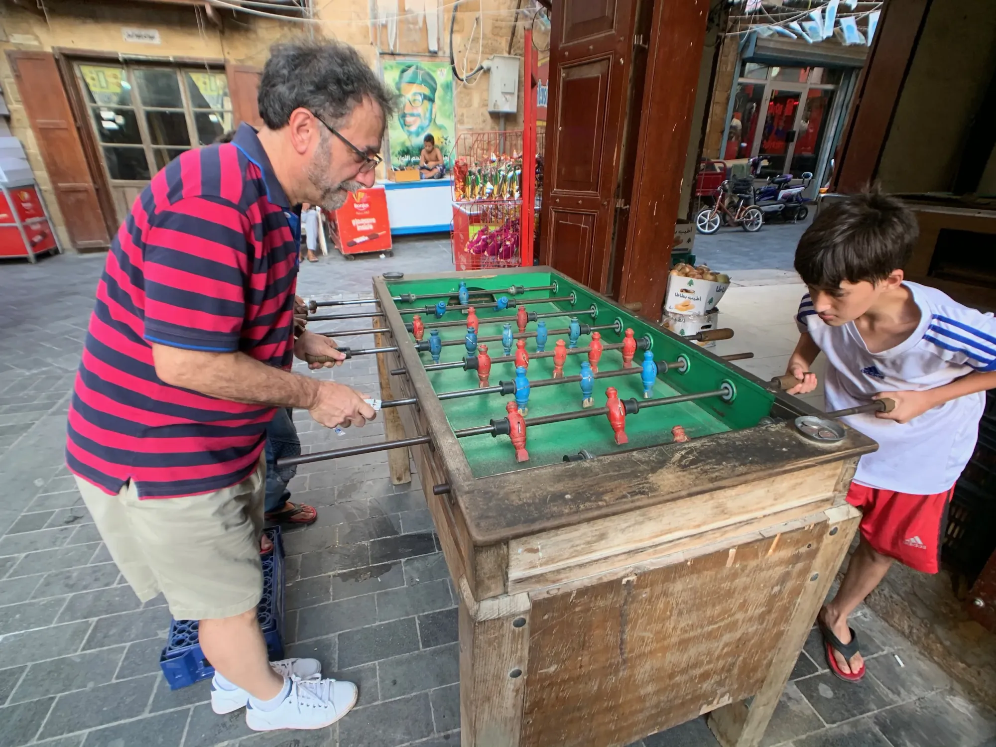 Finally Ismat showed us some mercy and took us to a place for minted lemonade. Along the way David showed off his football and foosball skills.