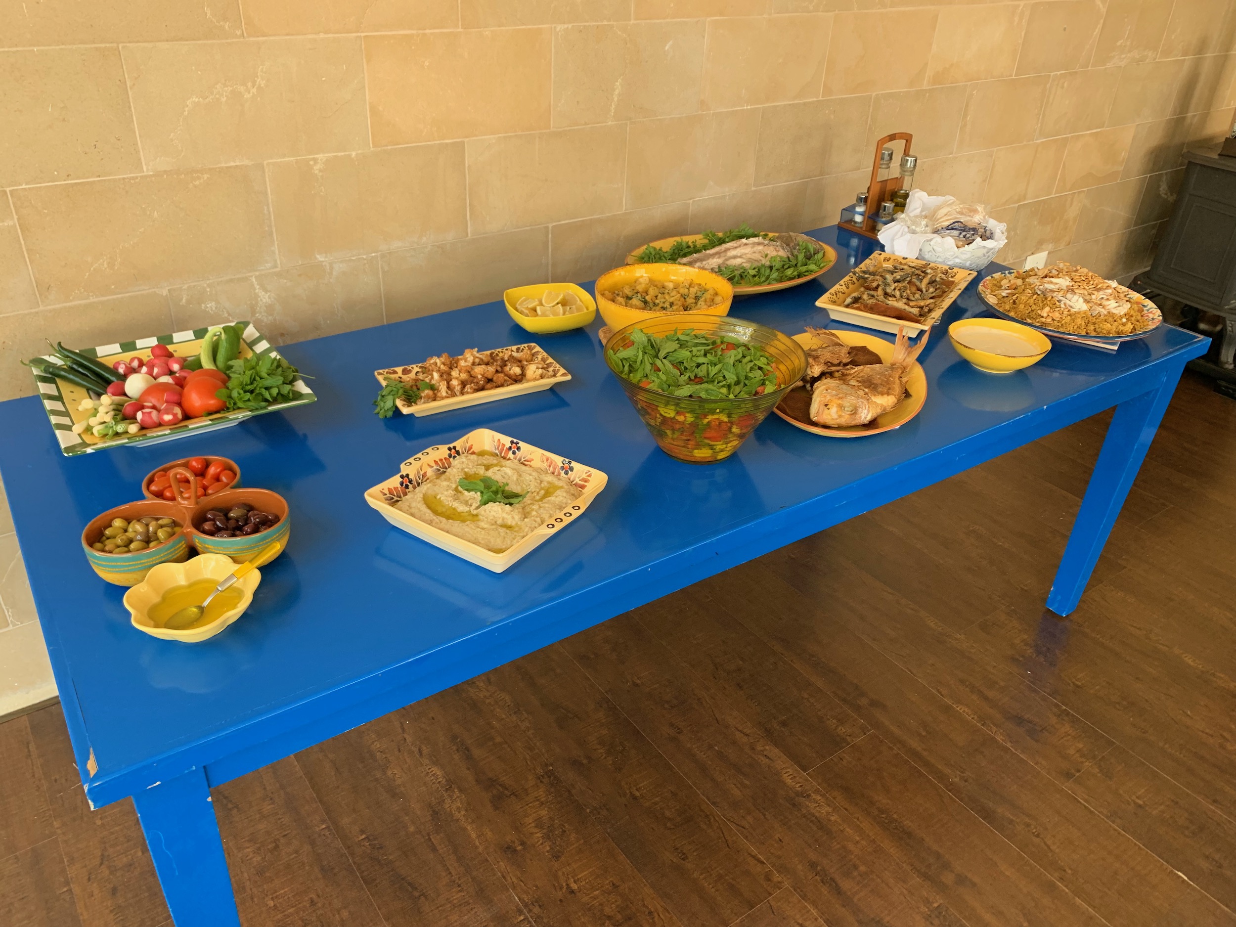 Super chilled out morning with our normal breakfast at the hotel and then chilling out for a few hours. We headed up for an early lunch (2pm) at Mazen and Hibba's house, one of the couples we met for dinner the night before. They have an amazing house with a pool and olive trees that they harvest to produce olive oil. Hibba, the wife is one of five sisters and they are very close. When you meet each of them, they will tell you THEY are the best sister of the group. Three of the five sisters and their families joined us for lunch. We missed the big family party that happens on Sunday. We were offered more and more food from one sister to the next. We waddled out of there because Ismat, The Fixer, had a plan.