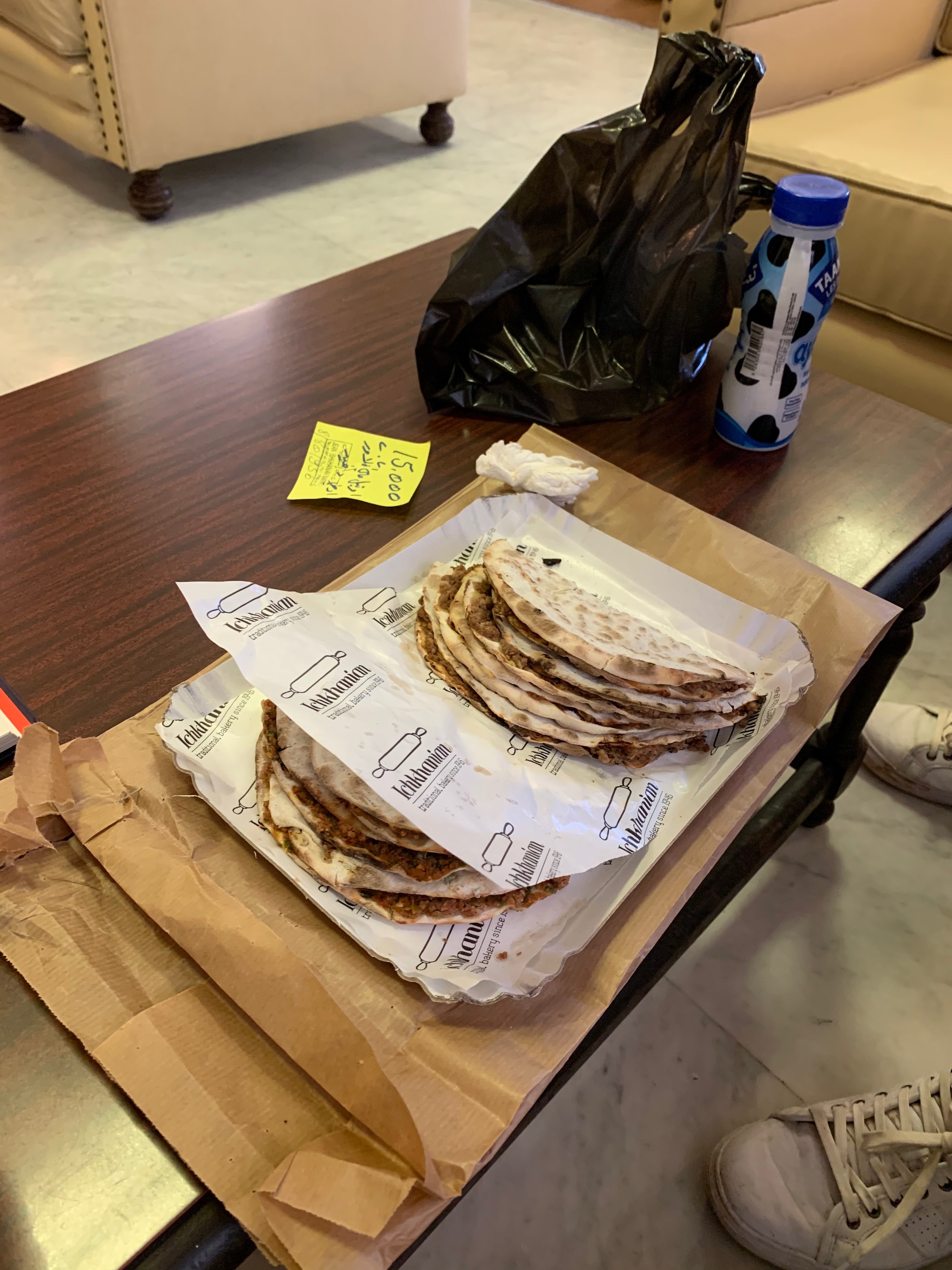 For lunch we had David's favorite meat pies delivered to the hotel. Just about anything you can think of can be delivered by motorcycle in Beirut.