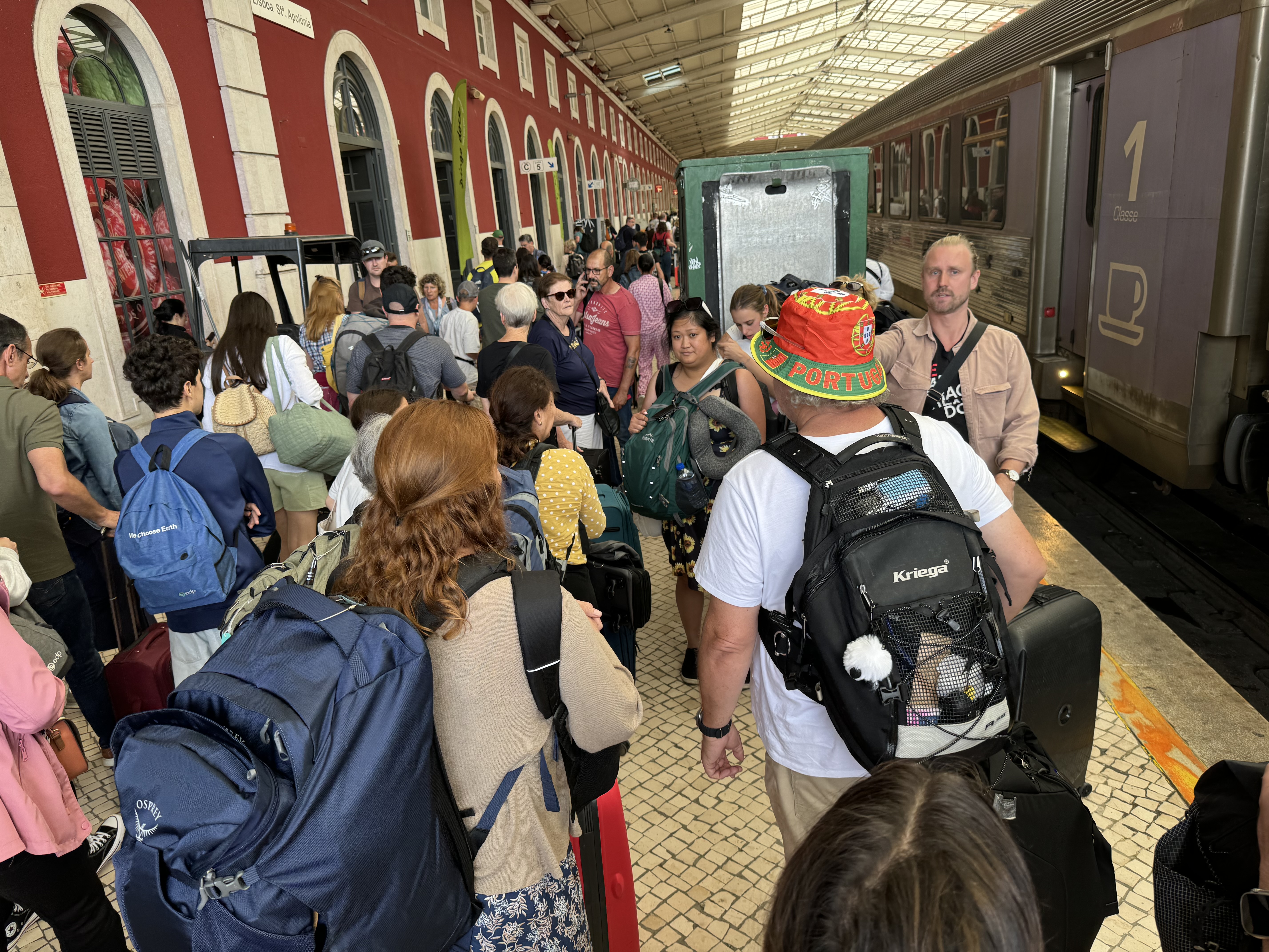 We headed out of Porto this morning to make our way to Lisbon. We took the train, but first we needed to carry our luggage up to the train station. Upon arrival in Lisbon, we did a quick orientation walk and took a funicular up one of the more steep streets.