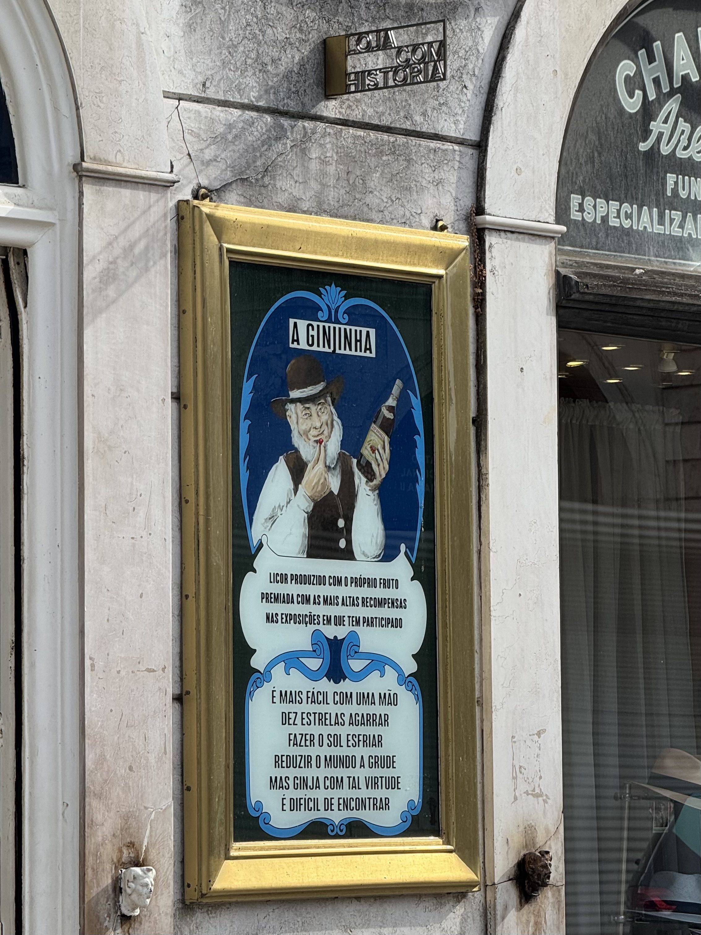 - Along the way, we stopped at a small ginjinha (sour cherry liqueur) shop.