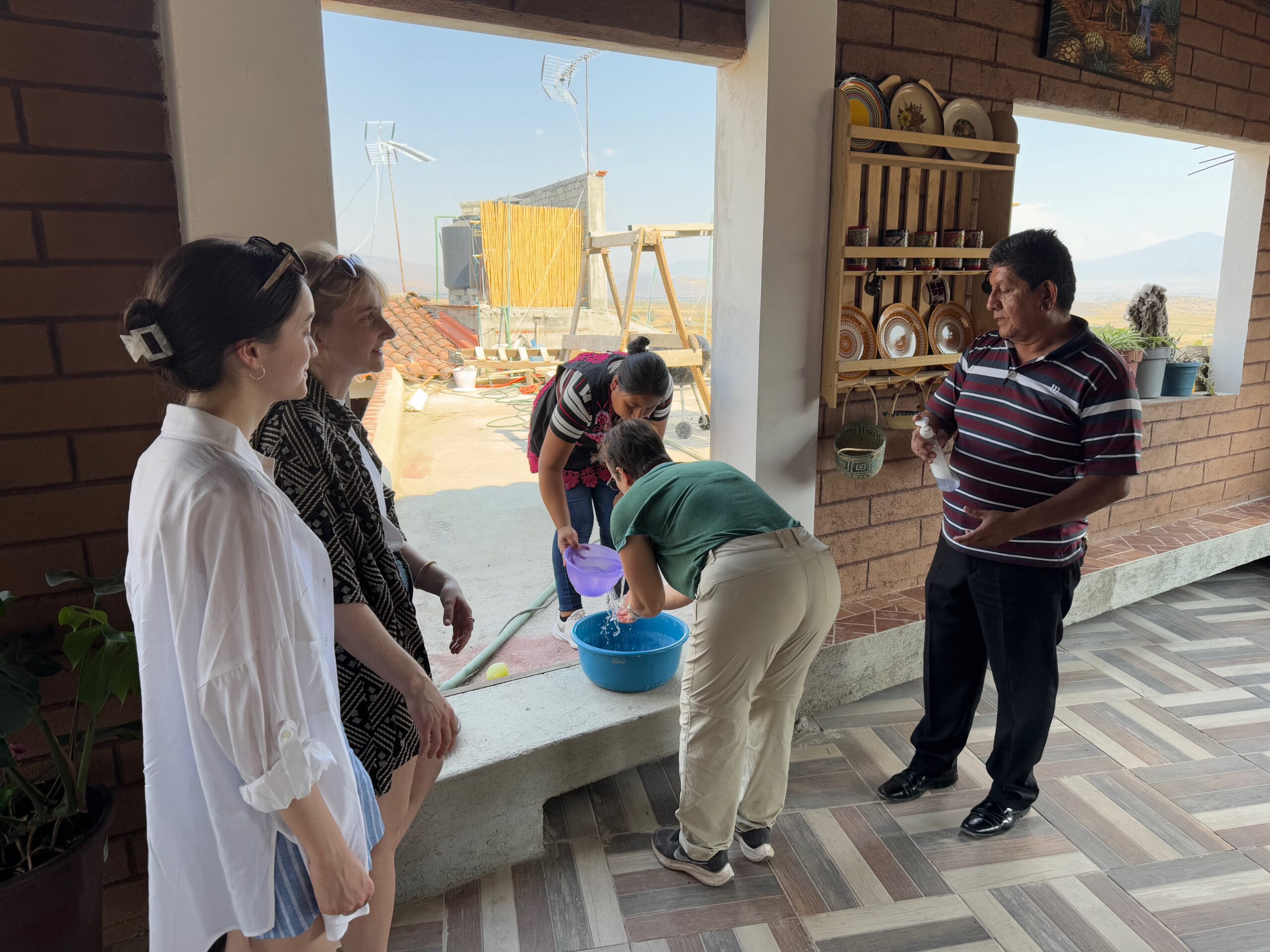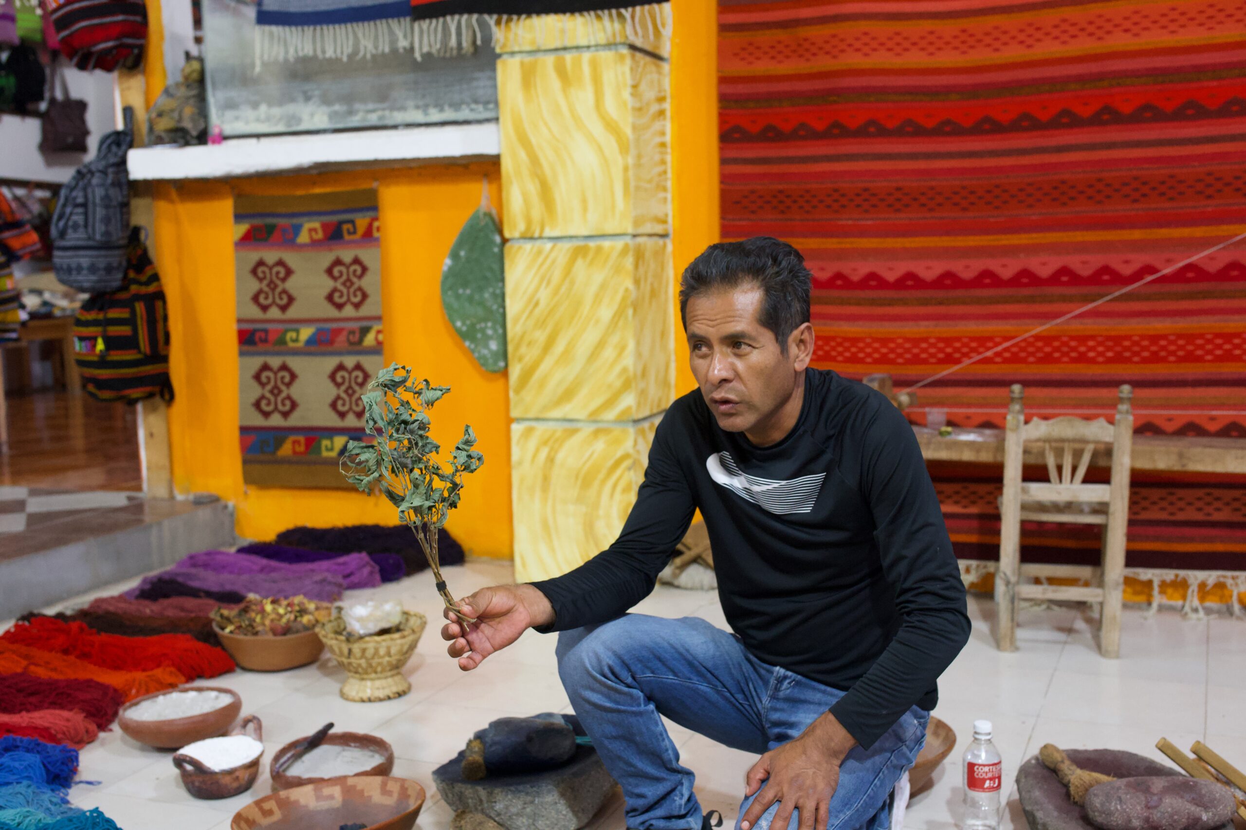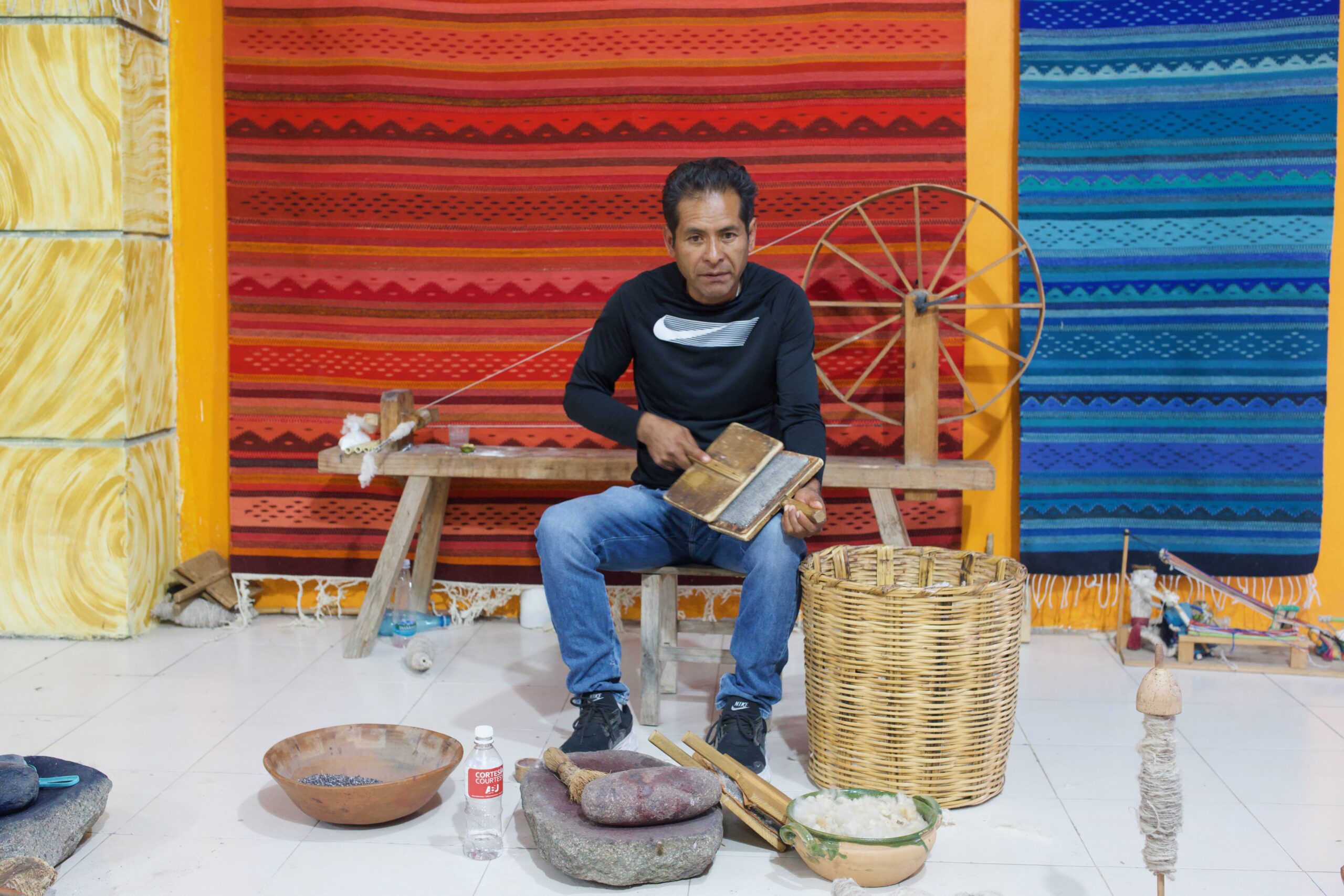 In the afternoon we headed a short distance out of town for a demonstration on how to make tortillas and visit a local family that weaves rugs. We were able to try and make tortillas and then enjoyed soup, meats, and some mezcal experiments with our homemade tortillas. After a quick bite to eat, we were shown a quick demonstration of the rug making process using natural dyes and a hand weaver.