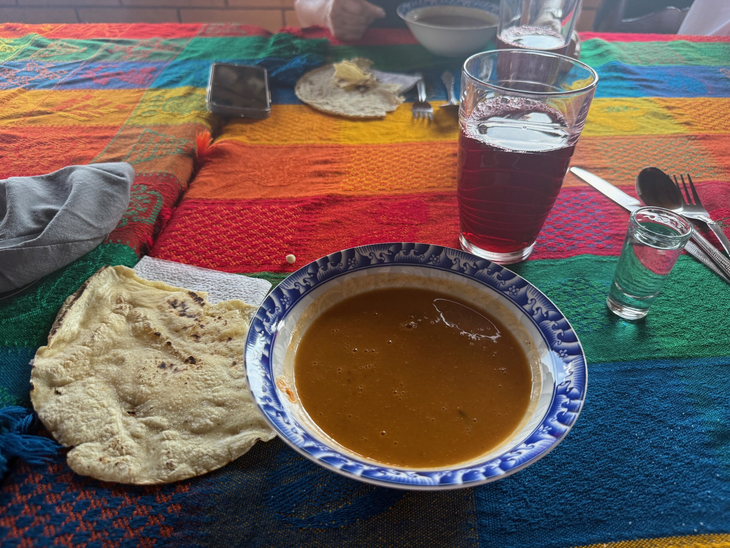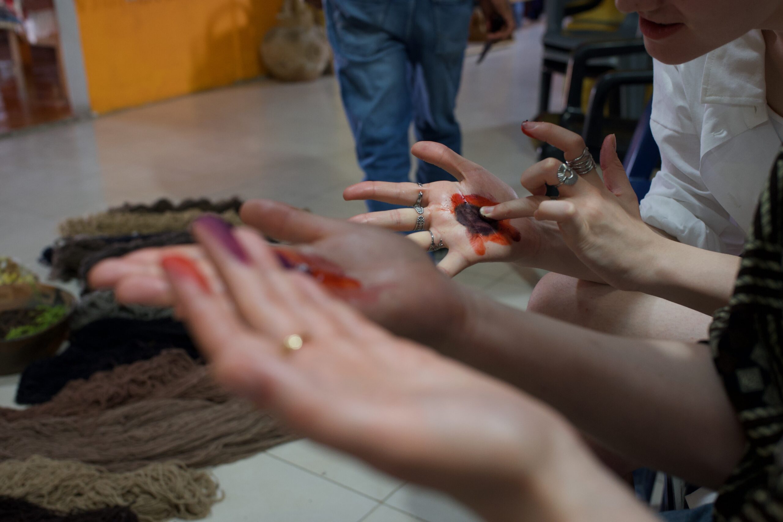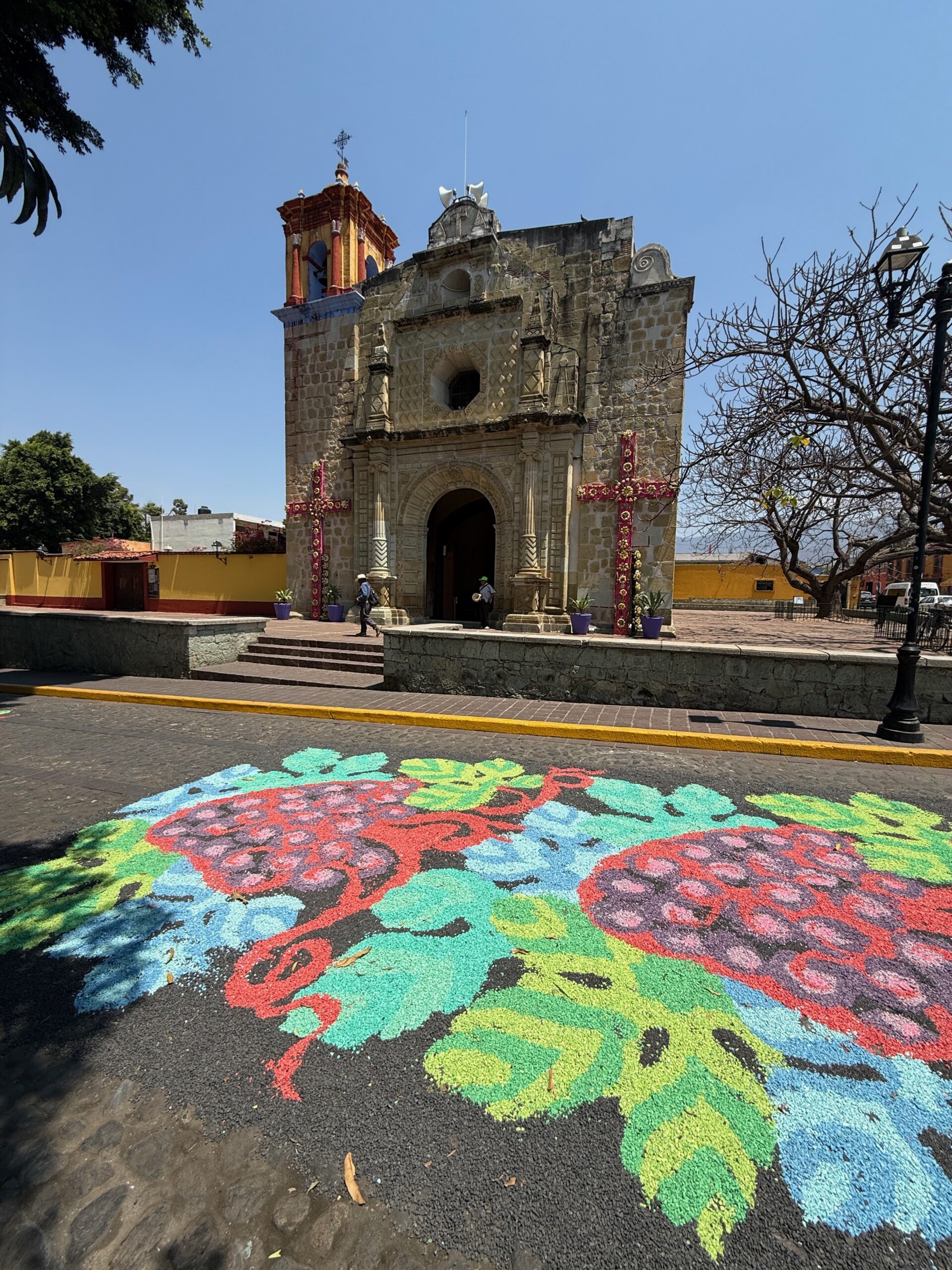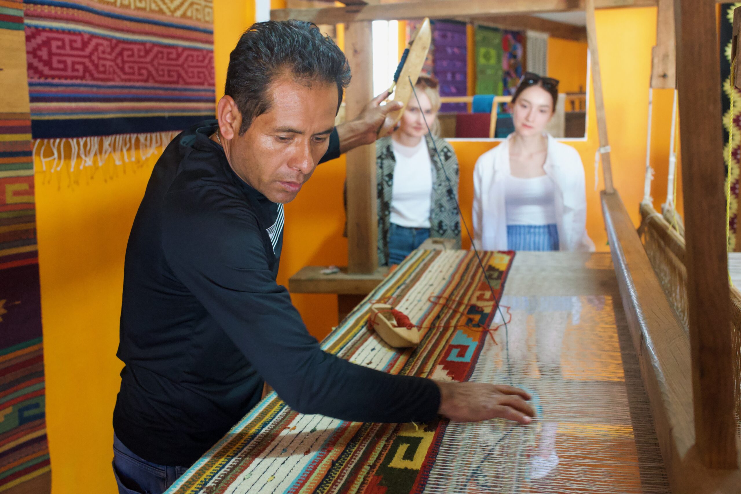 In the afternoon we headed a short distance out of town for a demonstration on how to make tortillas and visit a local family that weaves rugs. We were able to try and make tortillas and then enjoyed soup, meats, and some mezcal experiments with our homemade tortillas. After a quick bite to eat, we were shown a quick demonstration of the rug making process using natural dyes and a hand weaver.