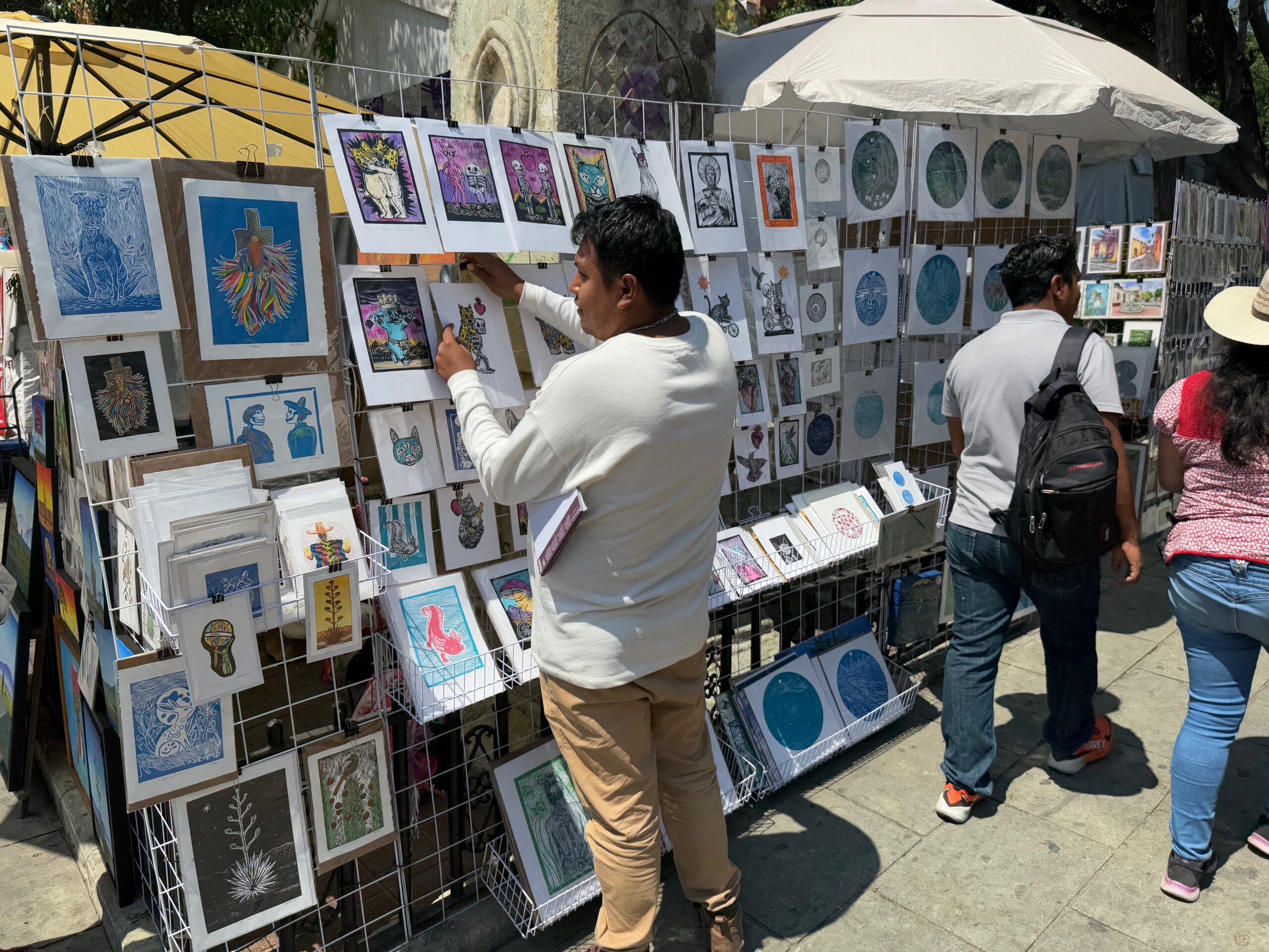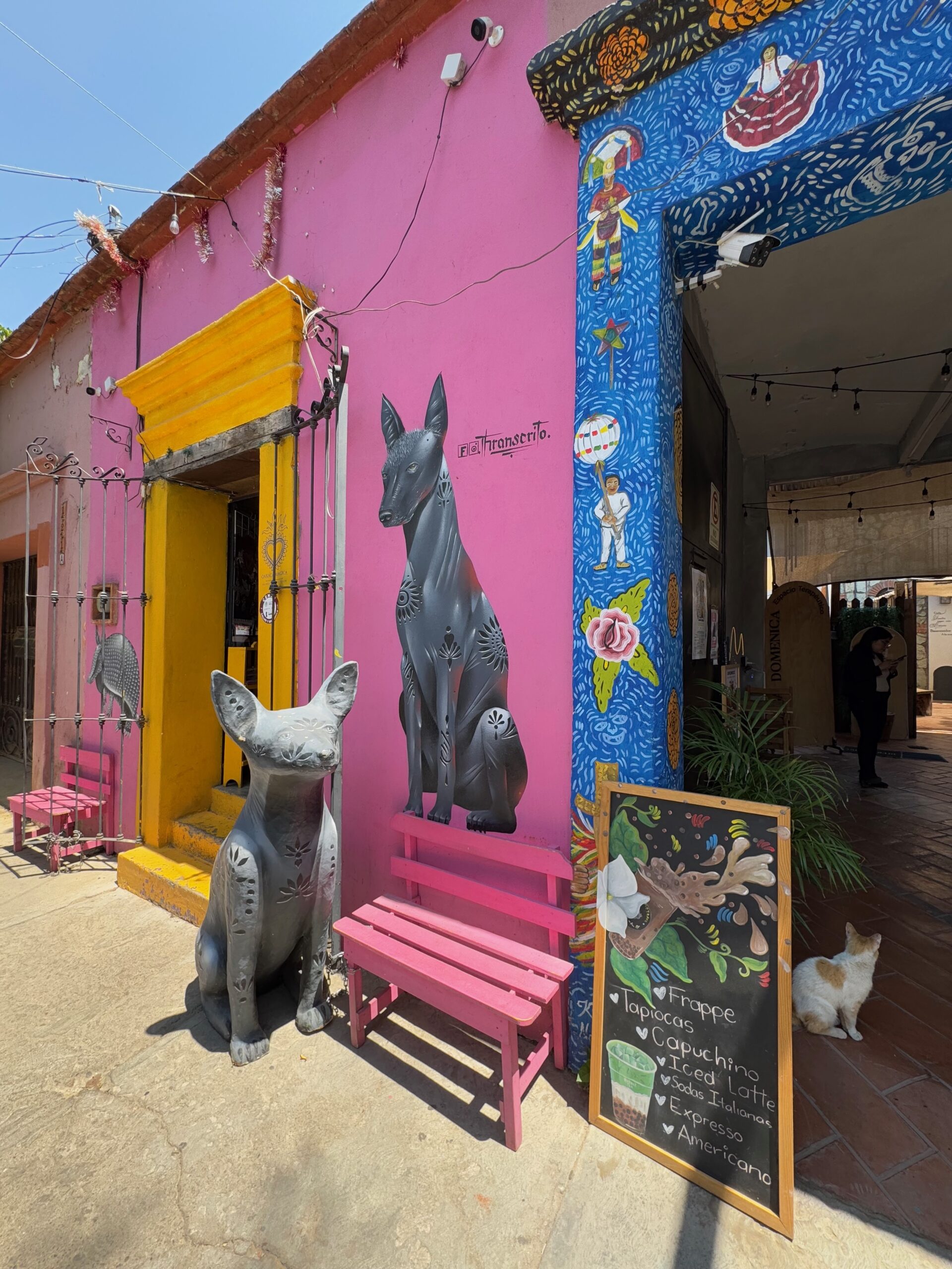 We had limited time in Oaxaca today so we grabbed a quick breakfast in the hotel and then decided to visit a few of the more quirky neighborhoods. We started out in the wrong place initially due to the maps app taking us to the wrong place. It worked out okay in the end because we stumbled across a few art markets where we were able to pick up a few nice prints and other pieces of art. We did finally get to the neighborhood we were looking for and explored the small streets that were filled with street art.
