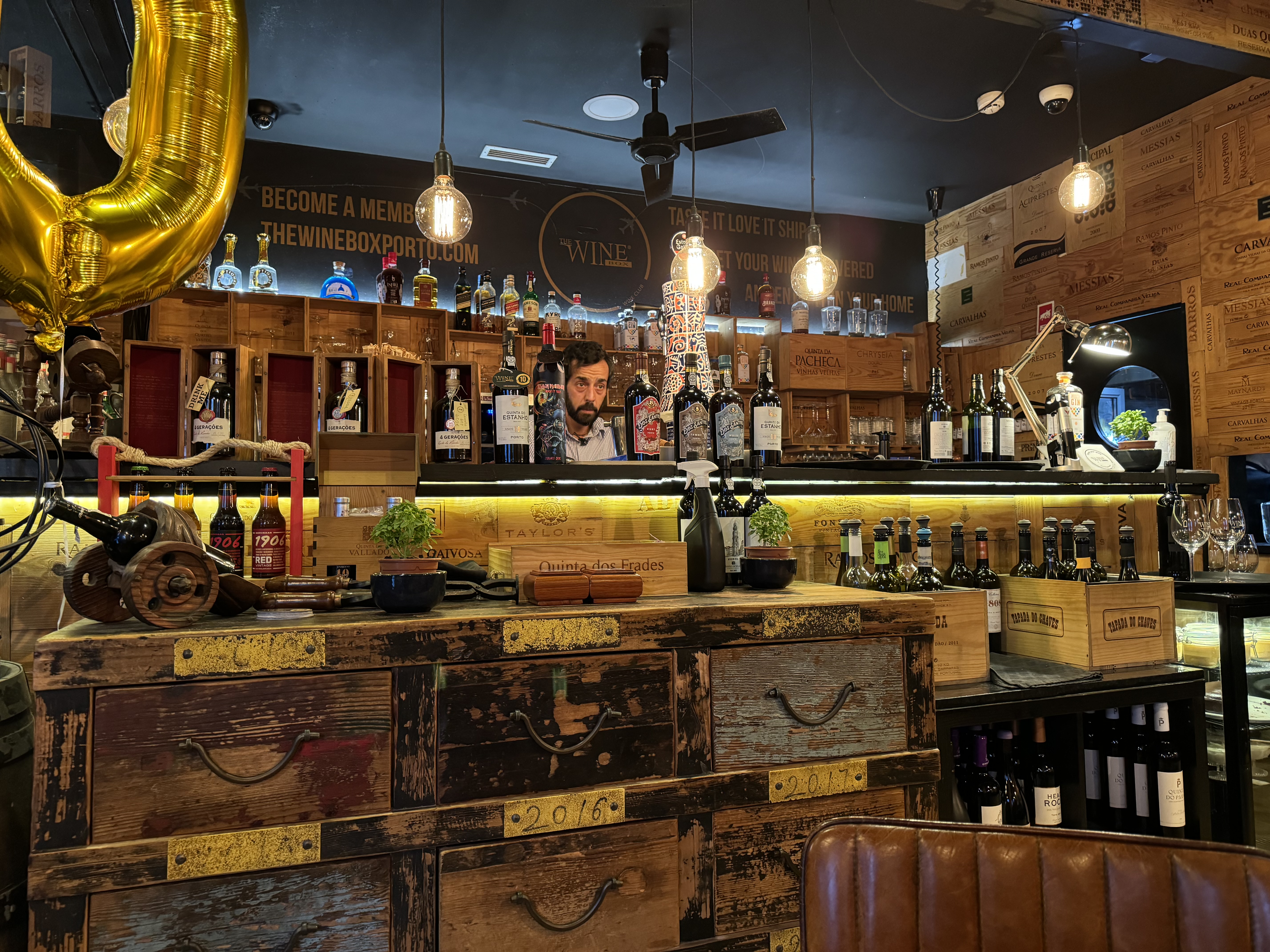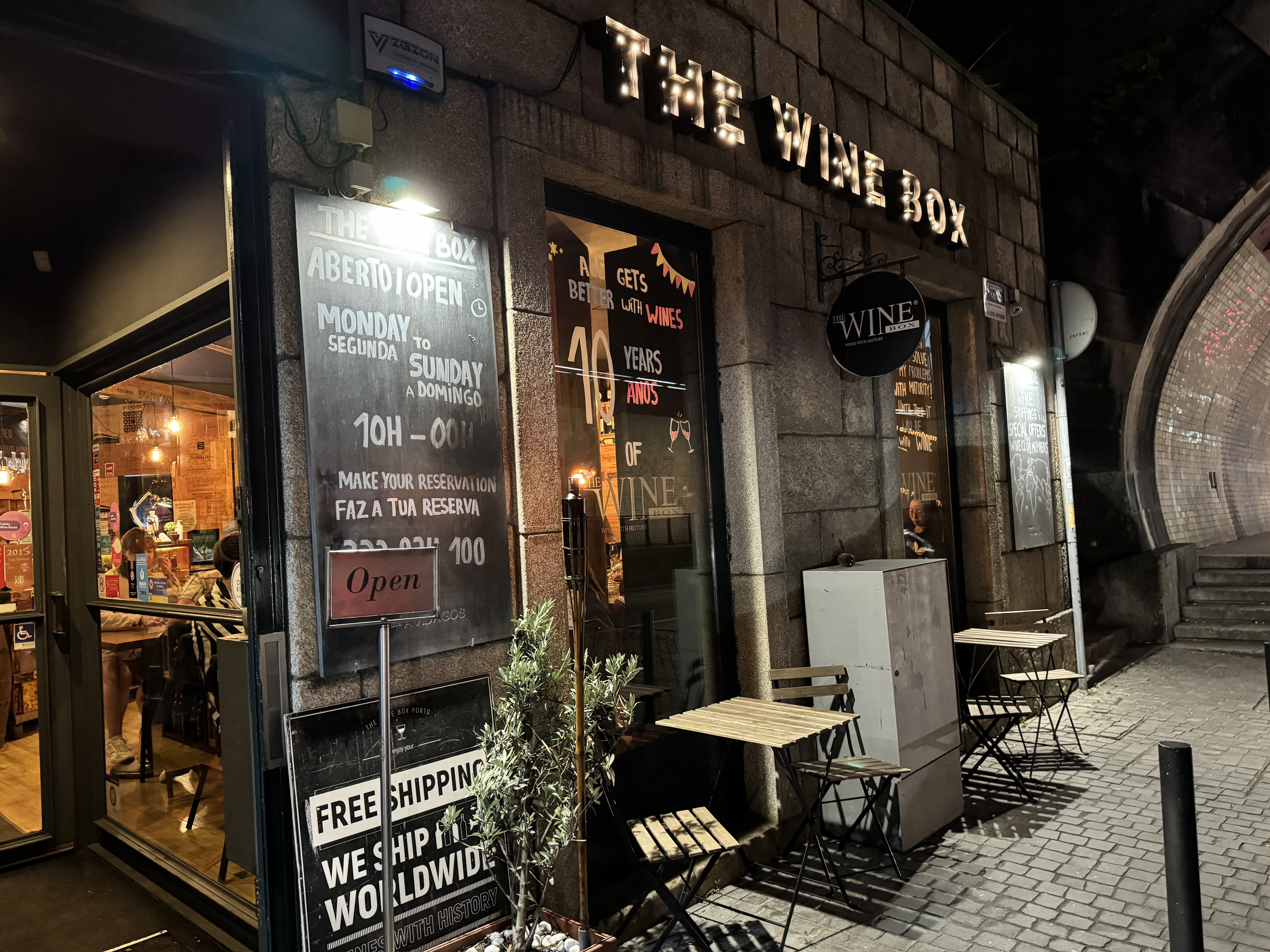 After arriving in Porto, we had a quick break before an orientation walk with our guide. Porto is built on the side of a hill and getting around requires climbing many stairs and heading up and down very steep streets. We then had a great dinner at a small restaurant called The Wine Box. The walls of the restaurant were decorated using the side of wooden wine boxes. They offered a great variety of local wines and small menu of well made food. We enjoyed some local wine as recommended by our waiter. We tried croquettes, sausage puffs, and the ham tortilla. Matt tried an octopus dish prepared using a recipe specific to Porto. After dinner, we stopped by a small cocktail bar next to the hotel for an after dinner drink and ran into our guide.