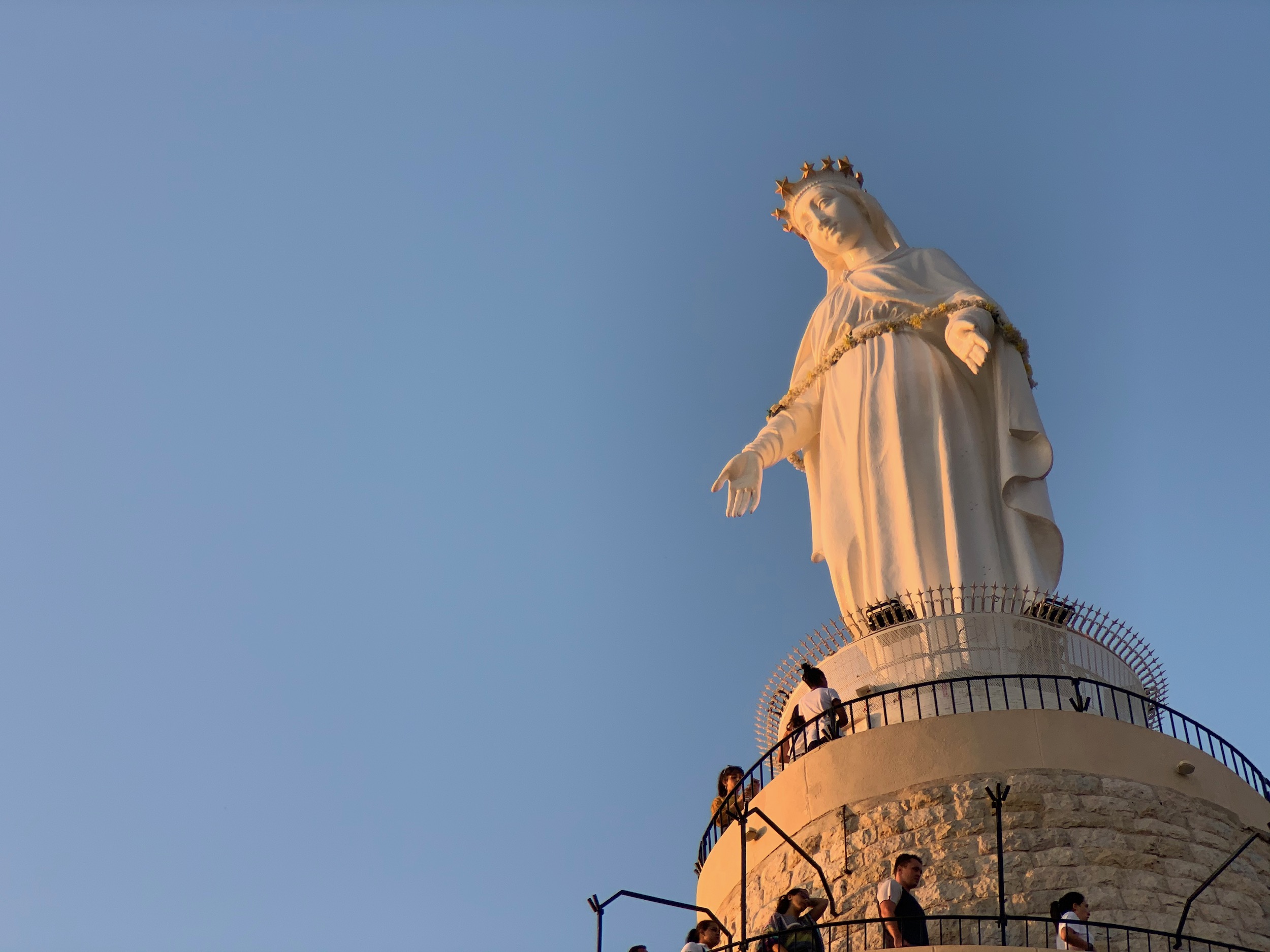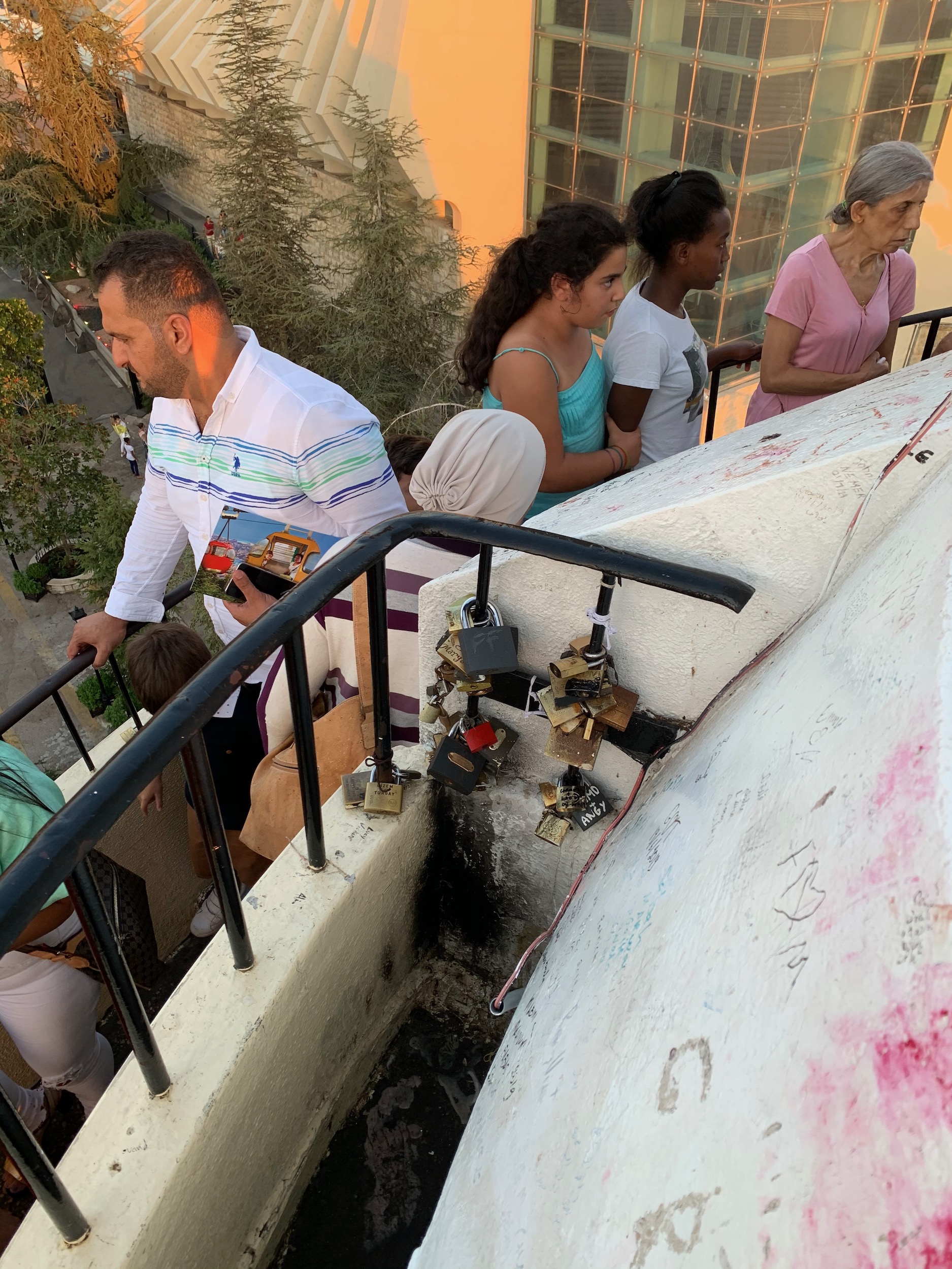 On the way back to Beirut, we stopped in Jounieh to ride the cable cars and the, teleferic to Our Lady of Lebanon Church. The cable cars are built right in between the apartment buildings. After arriving at the top, we took the spiral staircase up to the top of the Virgin Mary sculpture only to be presented with a very disappointing finish to our small journey to the top. As David complained, there was no celebration to the fact that you made it to the end. There was just a very small termination where lovers would place locks on the railing.